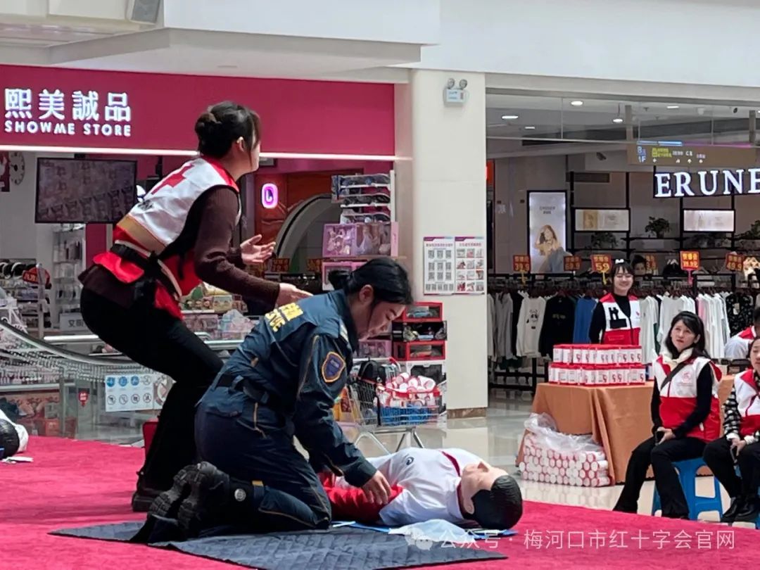 5月8日,市红十字会联合新华街道和维港城商业中心,在商场一楼大厅开展“5·8红十字博爱周”主题宣传活动。现场播放“三救三献”公益宣传片,并开展应急救护普及培训,邀请蓝天救援队、红十字志愿者上台互动和现场演示。现场向市民发放宣传品,并开展义诊与筹资募捐活动。