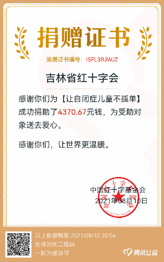 • 一起捐的成绩计算公司(团队)的公益成绩,由中国红十字基金会颁发电子证书。