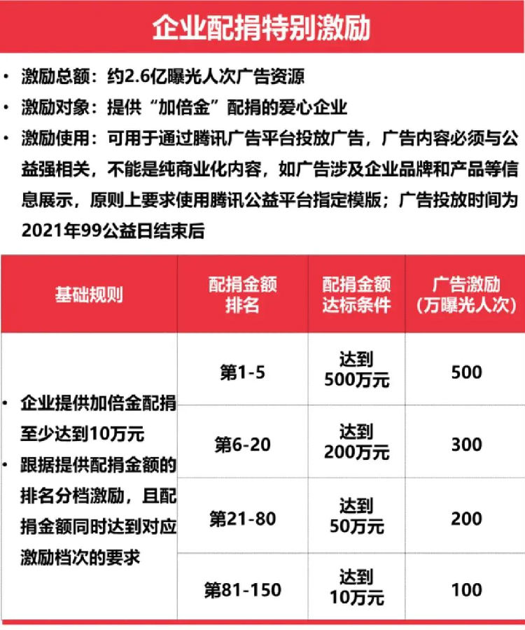 注:企业配捐金额5000元起,大于等于10万元将有机会获得腾讯公益推广。