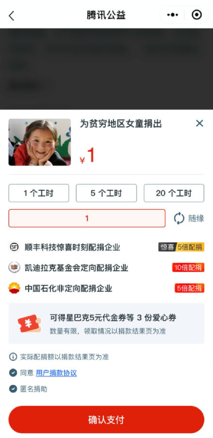 • 爱心券的额度、发放数量由企业自行设定。捐赠人在企业消费使用微信支付后,可直接抵扣.