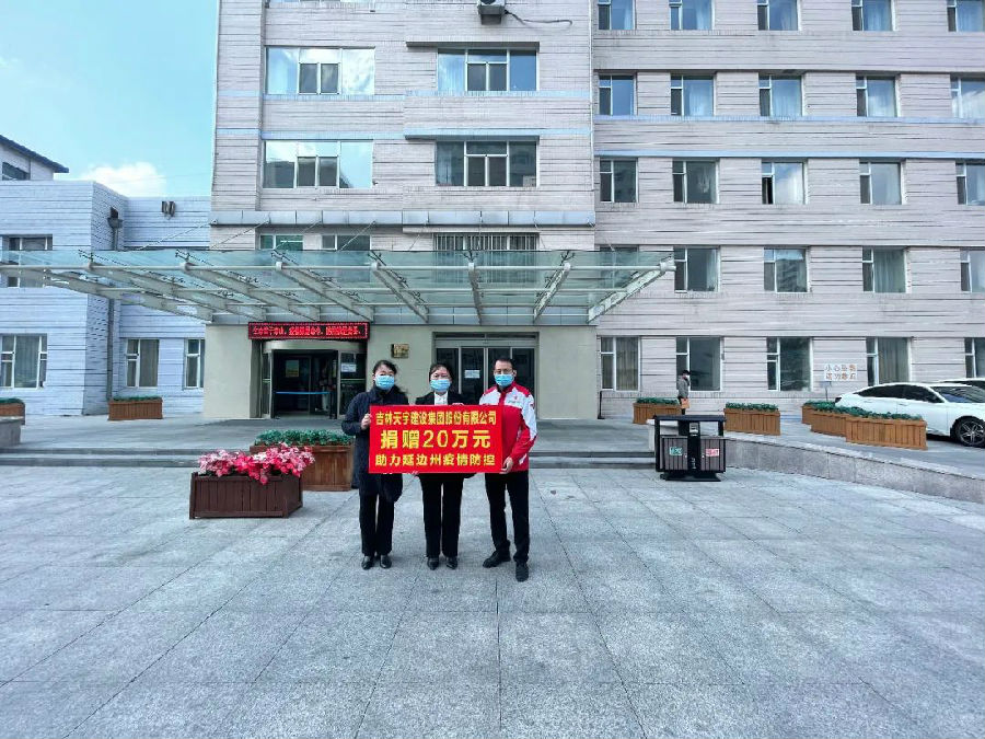 近日,为支持延边朝鲜族自治州抗击新冠病毒肺炎疫情,吉林天宇建设集团股份有限公司向延边朝鲜族自治州红十字会捐款20万元,定向用于延边大学附属医院采购抗疫物资,助力疫情防控工作。