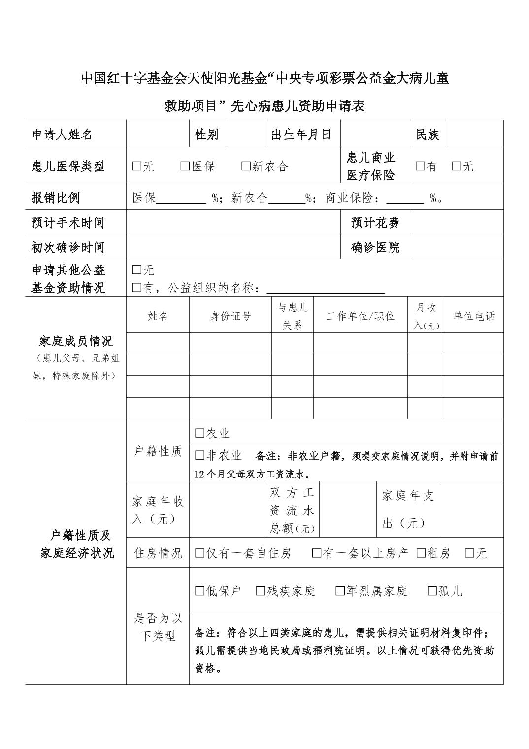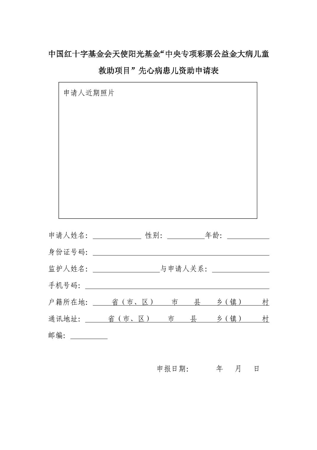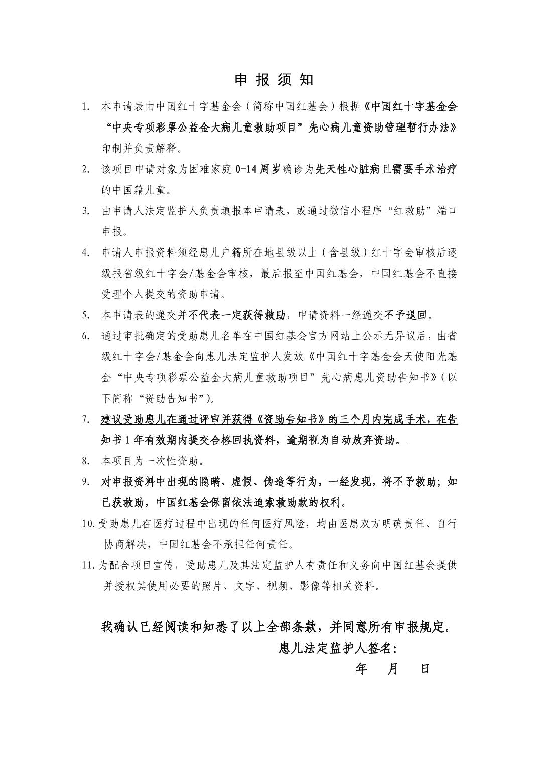 3、+《中国红十字基金会“中央专项彩票公益金大病儿童救助项目”先心病儿童资助申请表》+(0-14周岁).pdf