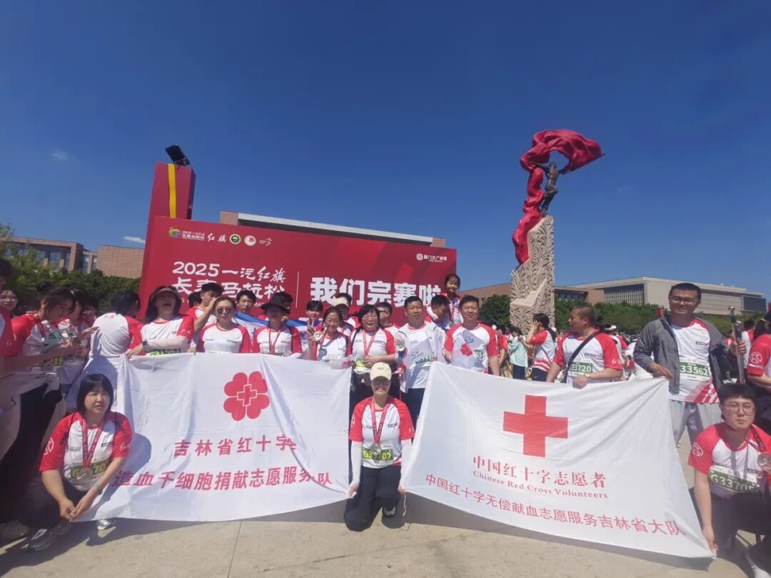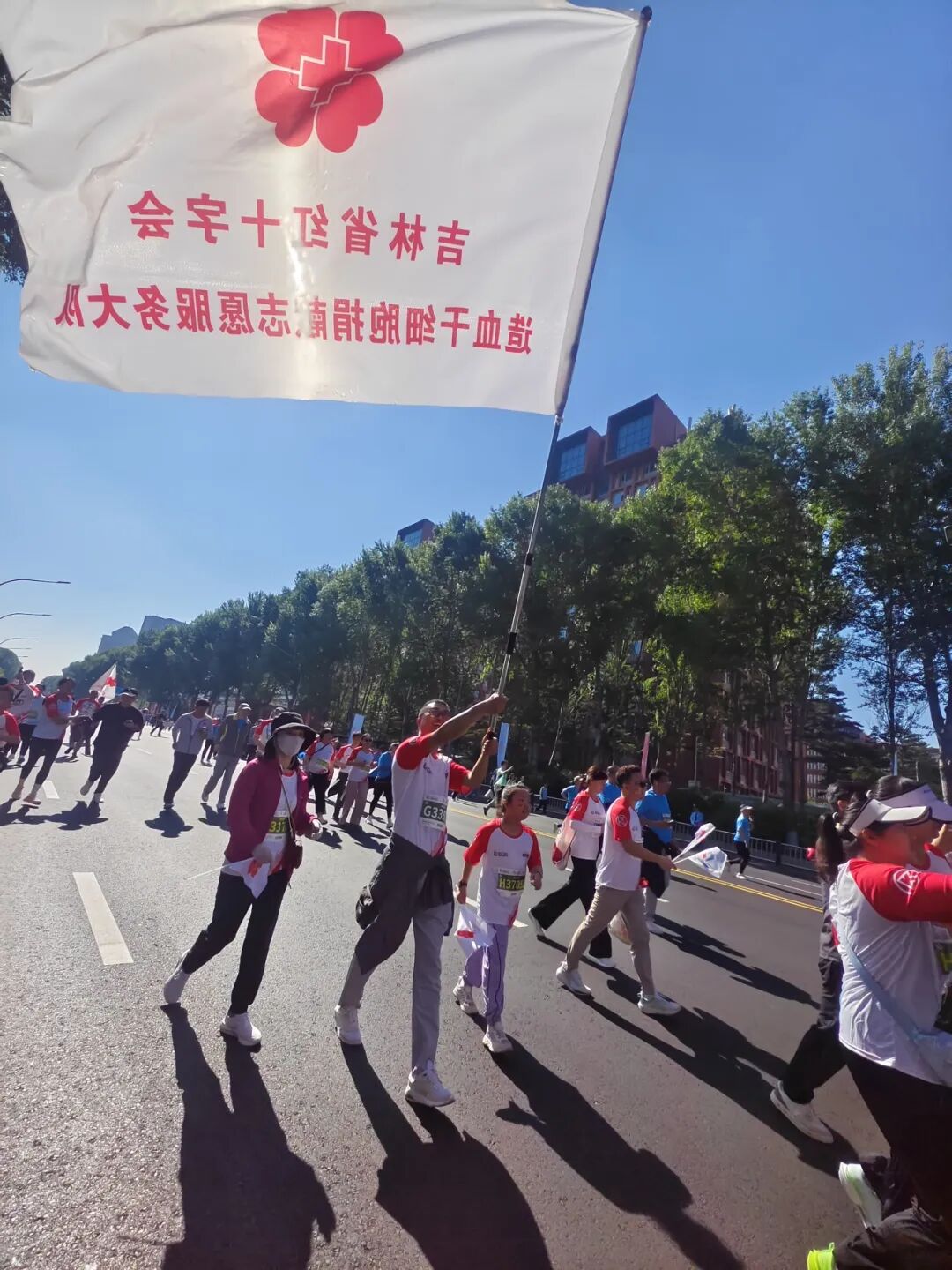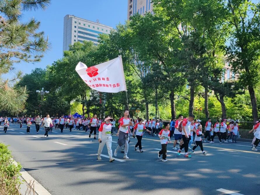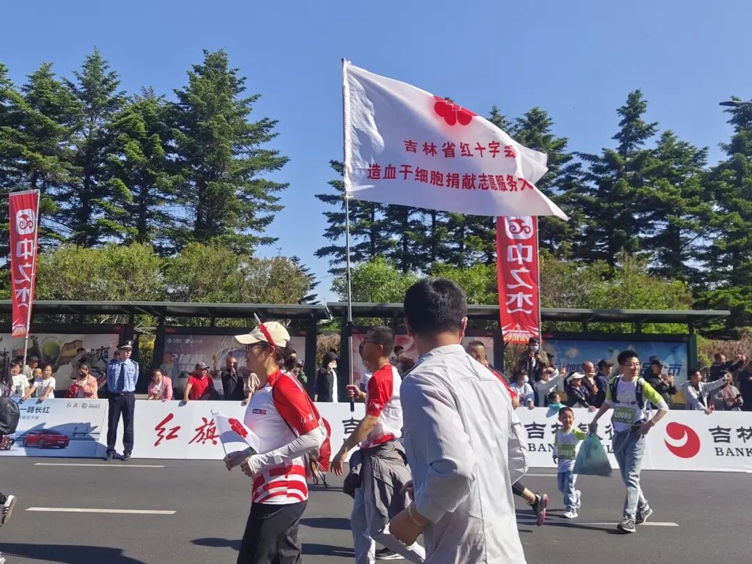 5月25日早7点,省红十字会造血干细胞捐献志愿服务大队组织了一支特殊的“生命接力跑团”,亮相一汽红旗长春马拉松赛场。队员们挥舞着手中的旗帜,喊着“加入中华骨髓库 传递生命新希望”的口号,在奔跑中向沿途市民传播生命的火种。