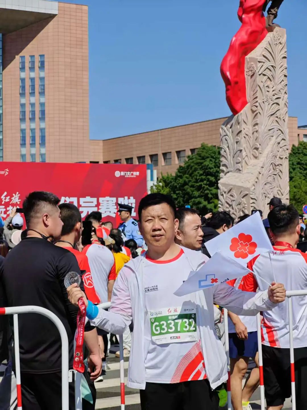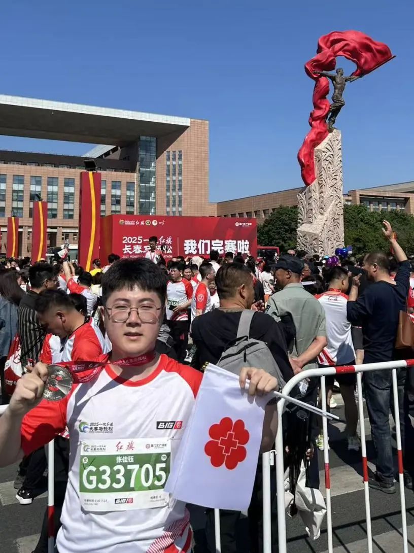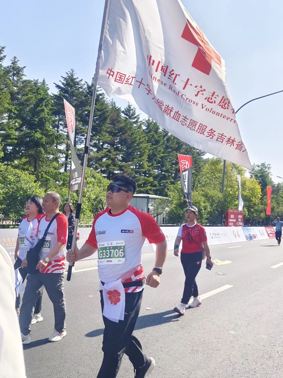 5月25日早7点,省红十字会造血干细胞捐献志愿服务大队组织了一支特殊的“生命接力跑团”,亮相一汽红旗长春马拉松赛场。队员们挥舞着手中的旗帜,喊着“加入中华骨髓库 传递生命新希望”的口号,在奔跑中向沿途市民传播生命的火种。