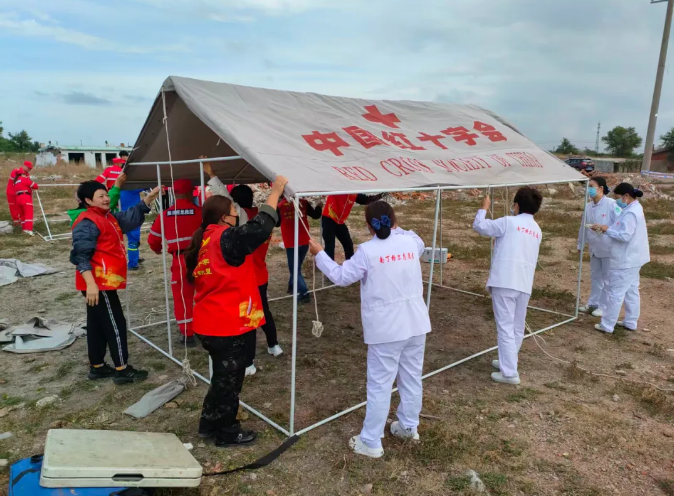 演练过程中,模拟了房屋倒塌导致人员受伤、被困等场景,随着现场指挥长一声令下,红十字各志愿服务队伍闻令而动、迅速集结,严格按照预定方案,连贯完成了现场警戒、消杀、伤员搜救、医疗救护、心理救援、物资发放等多个科目演练。全体救援人员精神饱满、协同配合,以专业的操作、娴熟的技能和高效的处置,充分展现了白城市红十字应急救援队伍“拉得出、用得上、打得赢”的过硬作风。